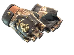 A Bloodhound Gloves | Snakebite pode ser encontrada nos seguintes exteriors: Factory New, Minimal Wear, Field-Tested, Well-Worn, Battle-Scarred. Cada exterior tem float range próprio e afeta o preço e a procura pela skin.