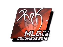 A Sticker | RpK (Foil) | MLG Columbus 2016 é classificada como Exotic (exotic). A raridade influencia diretamente o preço e a liquidez da skin no mercado.