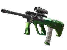 A AUG | Carved Jade pode ser encontrada nos seguintes exteriors: Factory New, Minimal Wear, Field-Tested. Cada exterior tem float range próprio e afeta o preço e a procura pela skin.