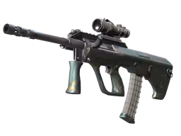 A AUG | Surveillance pode ser encontrada nos seguintes exteriors: Factory New, Minimal Wear, Field-Tested, Well-Worn, Battle-Scarred. Cada exterior tem float range próprio e afeta o preço e a procura pela skin.