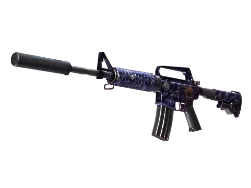 A M4A1-S Black Lotus é classificada como Classified, com chance de drop de aproximadamente 3.2%. O acabamento é Gunsmith — uma técnica que combina diferentes texturas e materiais em design integrado. O float varia de 0.00 a 0.50, cobrindo de Factory New a Well-Worn.
