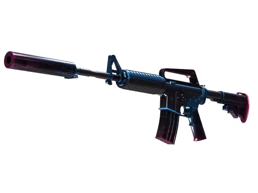 A flavor text oficial — "Quiet retrofuturism" — é um trocadilho elegante. O "quiet" (silencioso) se refere ao supressor da M4A1-S, enquanto "retrofuturism" descreve perfeitamente a estética visual. Uma arma silenciosa vestida com o barulho visual dos anos 80.