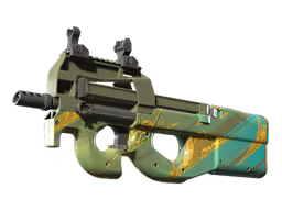 A P90 Mustard Gas é uma skin feita de duas camadas que leem quase como peles diferentes sobre o mesmo modelo.