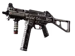 No CS2, a UMP-45 carrega esse DNA de contenção. É uma das SMGs de menor custo no menu de compra, com dano por projétil entre os mais altos da categoria e penetração de armadura suficiente para justificar o investimento em rounds de recurso limitado. O compromisso é a cadência lenta e o carregador curto — margem de erro estreita, onde cada tiro conta mais que o volume de fogo. A UMP-45 Arctic Wolf, na Clutch Collection, veste essa mesma arma com pelagem de predador ártico e um flavor text sobre sobrevivência. A Motorized a veste com pistões e mangueiras e um flavor text sobre manutenção.